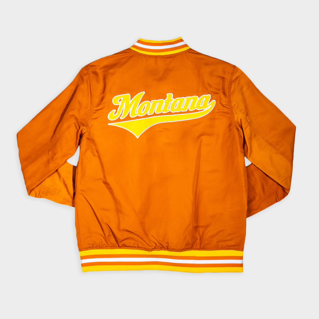 This slobbering, angry grizzly is Montana fan favorite, officially used from 1966 to 1987. To make sure our bomber jacket captured the late '60s vibe of this good ol' grizzly, we paired the grizzly with a classic, script "Montana" that predates the "Griz" script the school uses today.