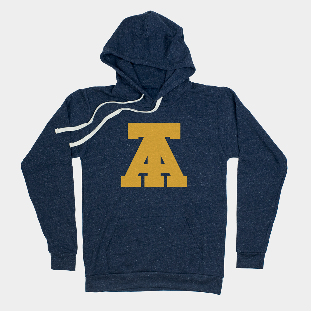 This retro AT logo was used from the 1950s-1980s. We think it's pretty timeless, so we brought it back on this cozy navy hoodie.