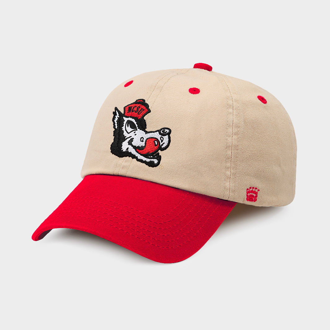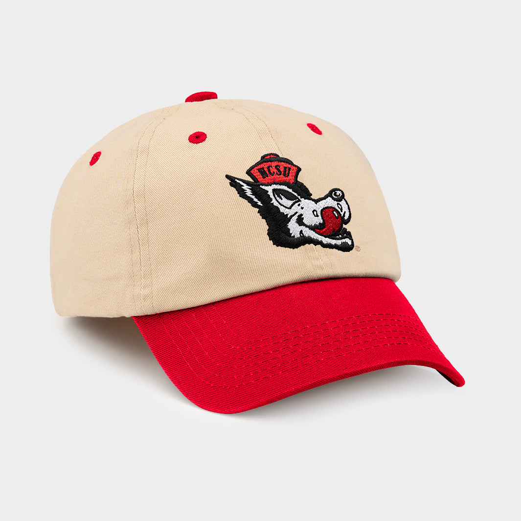 The slobbering wolf made his debut in 1967, alongside the strutting wolf NC State still uses today. The beloved mark came back as an official throwback logo in 2021. Set on this cozy, adjustable dad hat, he's a fun, vintage statement to show off Pack Power. Brought to you in partnership with College Vault.