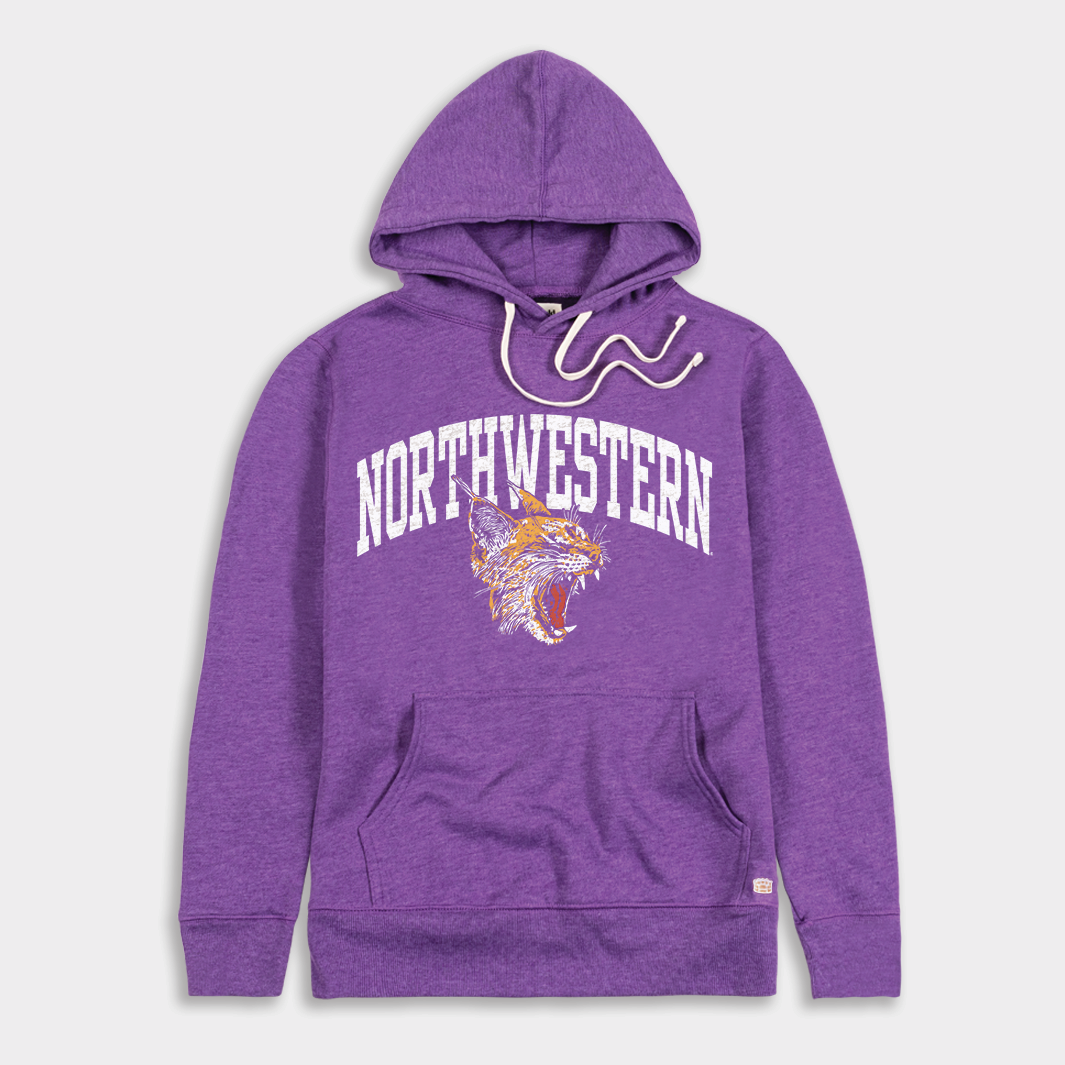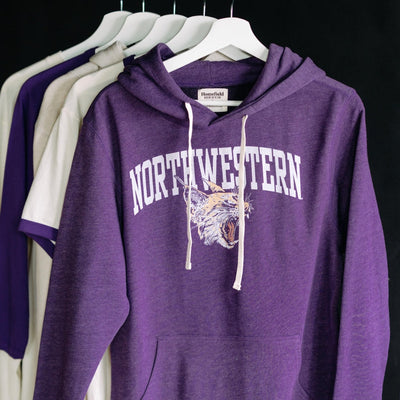 Illustrator Adam Johnson – known for, among other work, his rendition of Bevo – created this realistic, roaring wildcat. To give it even more of a throwback feel, we paired it with a classic, arched “Northwestern” that’s fit for royalty, even if you’re running errands and the paparazzi spot you (if you know, you know).