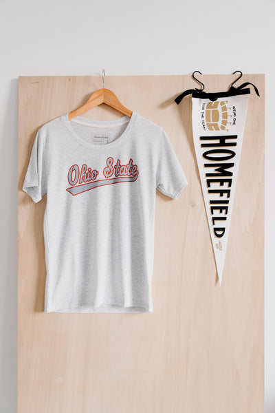The oldest team at Ohio State, the baseball team is known for its famous MLB alums and their national championship in 1966. This classic OSU baseball script has been in use since at least the mid-1990’s, and the Nick Swisher-era Buckeye teams of the early 2000’s wore this script when they won the conference in 2001.