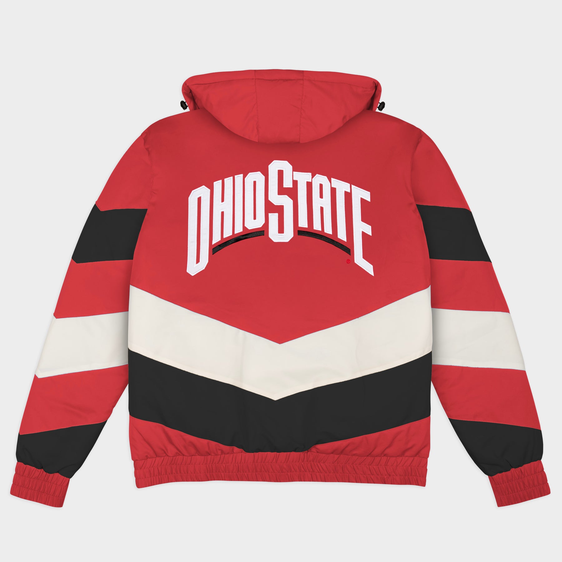 Change the winter jacket game with the Ohio State Gamebreaker Jacket. Inspired by the bold, maximal sportstyle jackets of the 1990s, each jacket is designed with a high neck and removable hood to withstand whatever elements the day throws at you. The chevron stripes and classic, vintage logos on the chest and back paint the quintessential game day fashion picture.