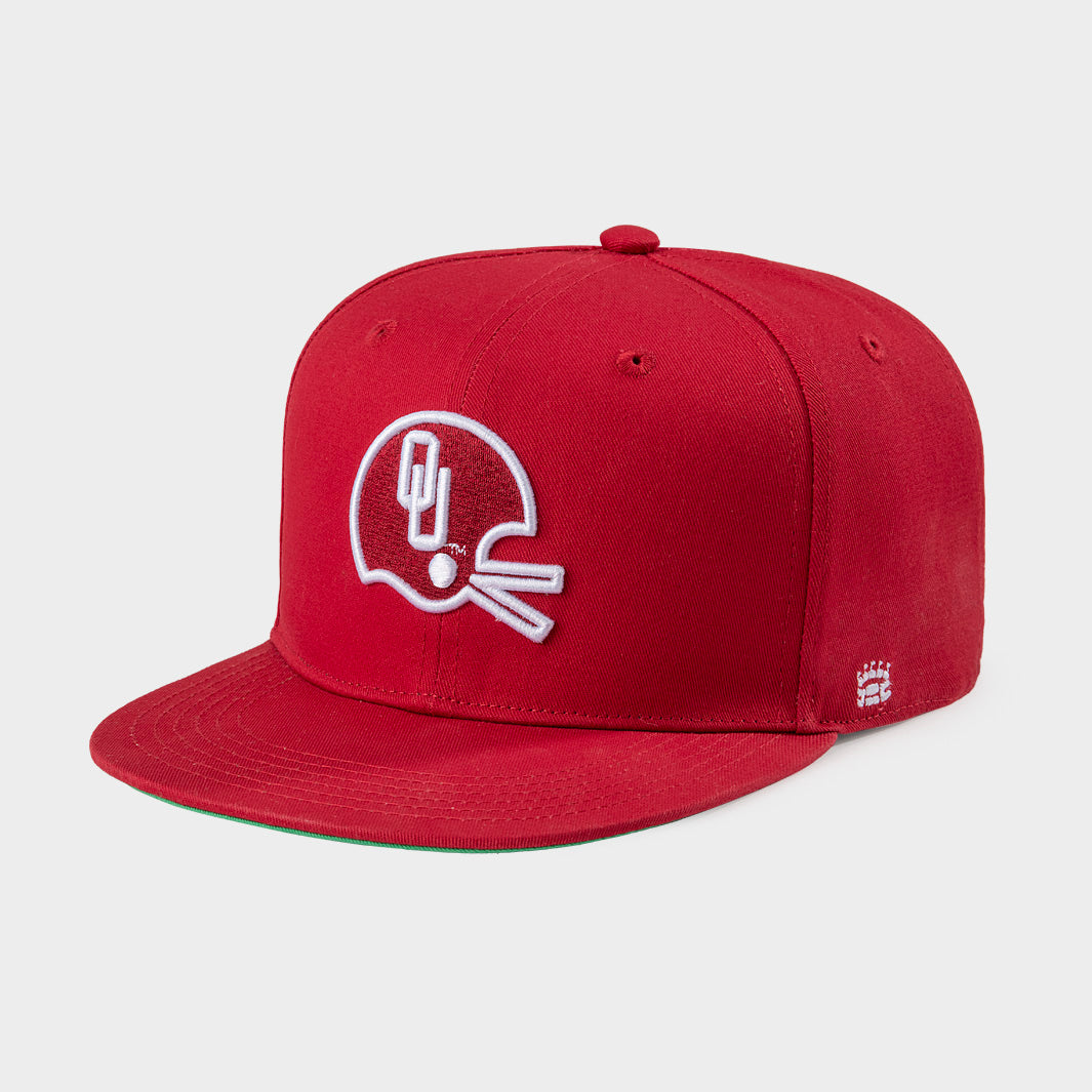 The design on this retro OU snapback takes us back to the Barry Switzer era, one of the most successful periods of Oklahoma football's long history. Switzer coached the Sooners to three national championships, and either won or shared the Big Eight conference title every season from 1973 to 1980. As the so-called "high priest" of the "church of OU football," Switzer's impact on the program can't be understated.