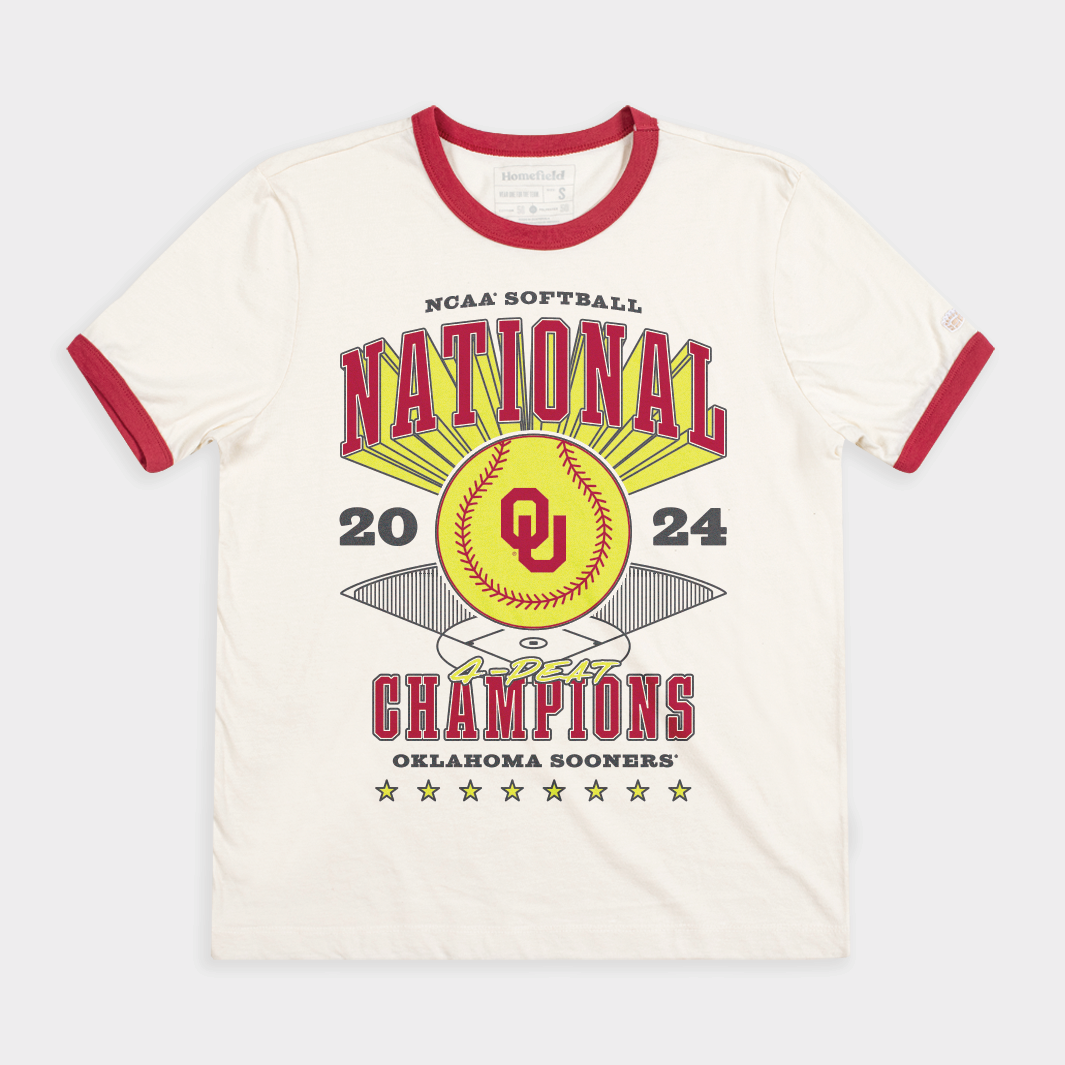 Oklahoma Sooners Softball 2024 National Champs Ringer Tee