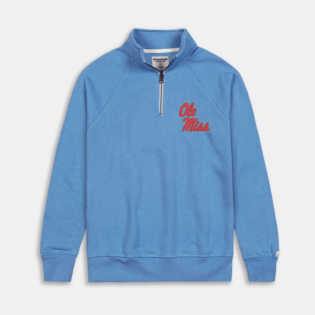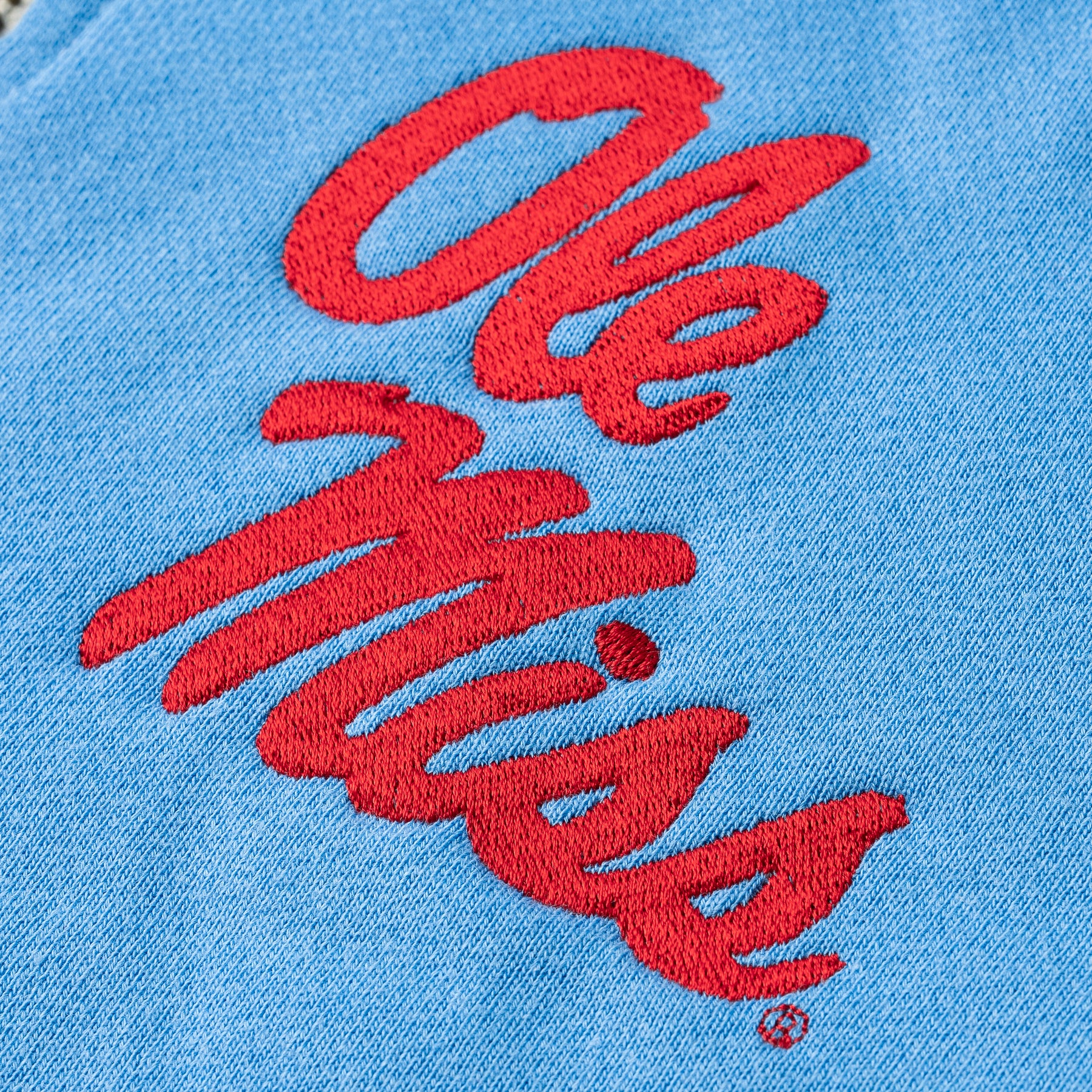 One of the most iconic scripts in the country, you’ll recognize this “Ole Miss” script anywhere. The stacked version has been a staple on their helmets since 1983, and displays prominently at the 50-yard line of the Vaught. To bring it all together, we put the logo on powder blue as a nod to a fan-favorite jersey color.