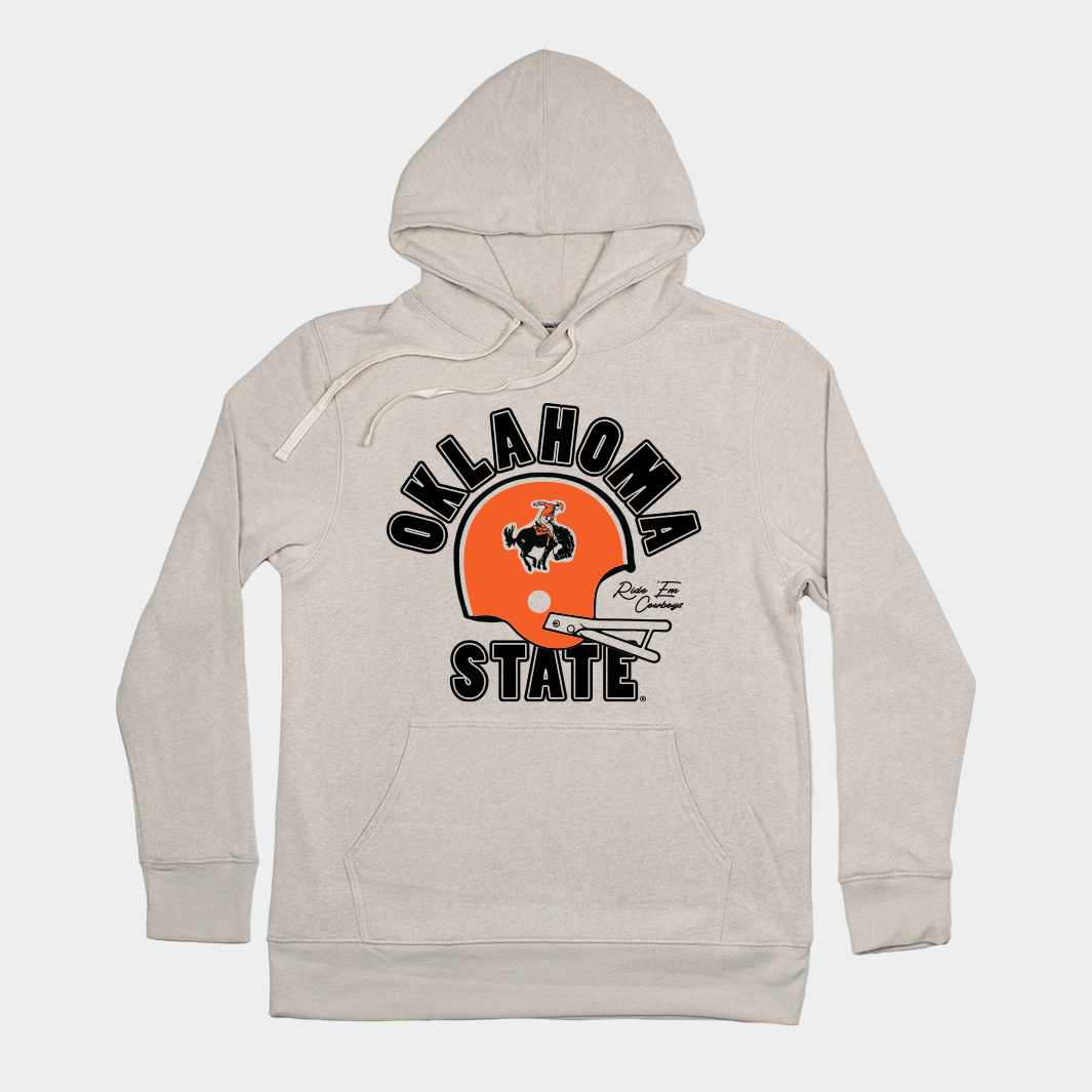 This rare Oklahoma State helmet was only worn for two seasons, from 1967-68. Now you can proudly wear this retro mark every day on this cozy oatmeal hoodie.