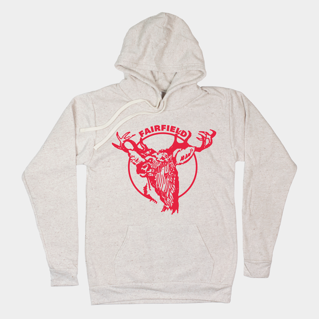 An amazing 1960s Fairfield logo and our super soft oatmeal hoodie, a perfect pairing.