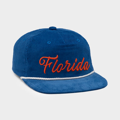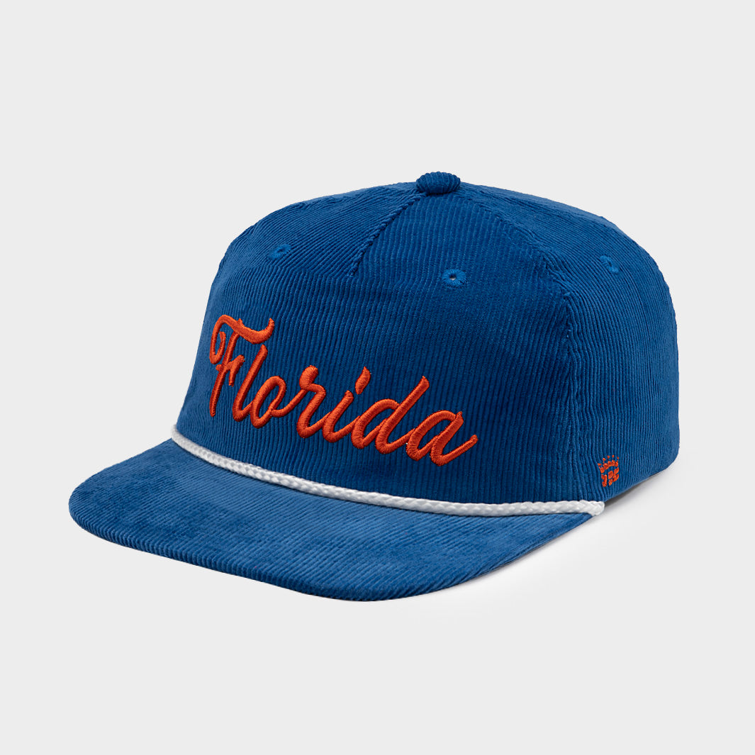 We referenced our favorite vintage hat designs and styles to create this simple – yet statement – corduroy Florida Gators hat. Featuring the comfort of a dad hat and the structure of a snapback, this durable, retro-inspired cap is built for Saturdays at the Swamp. Brought to you in partnership with College Vault.