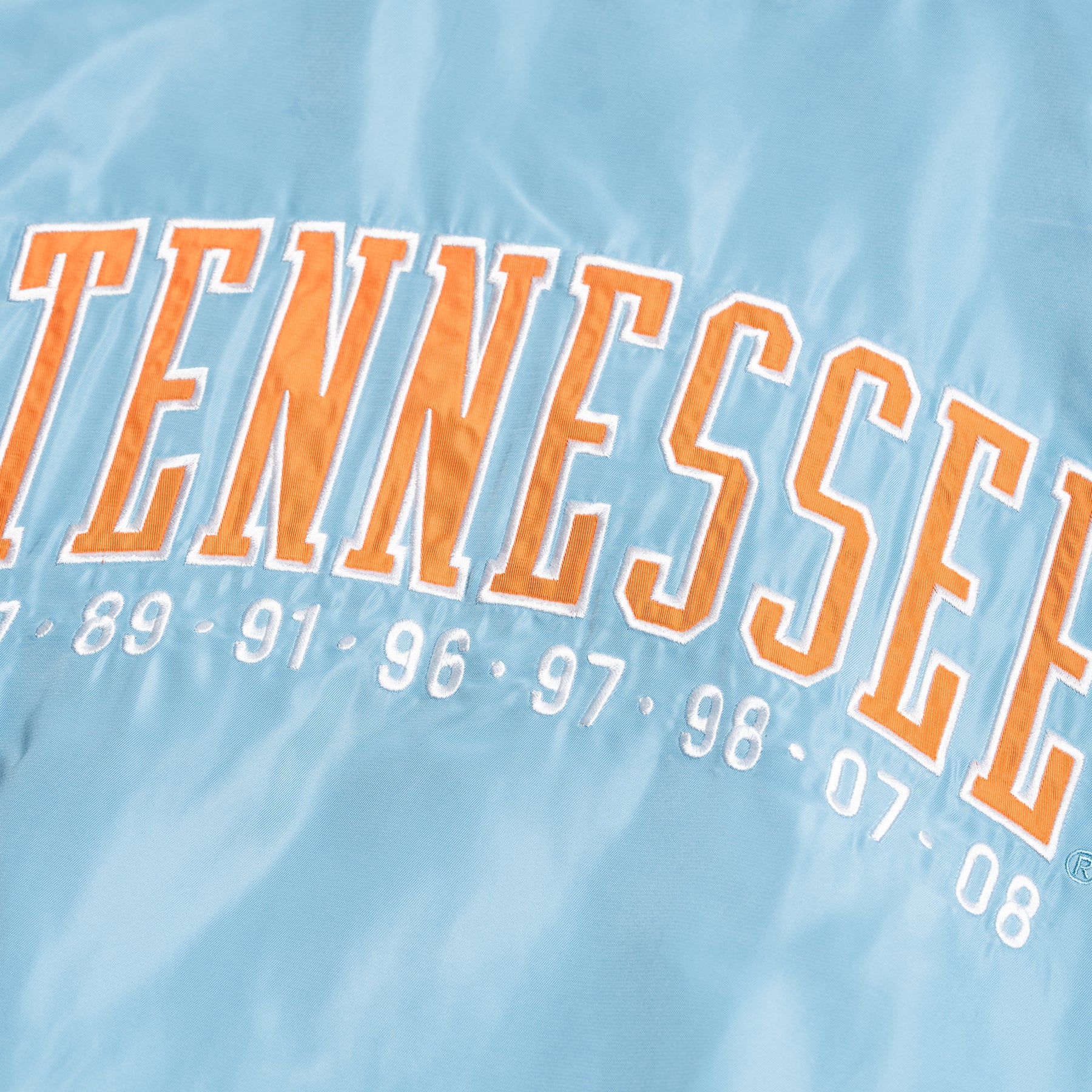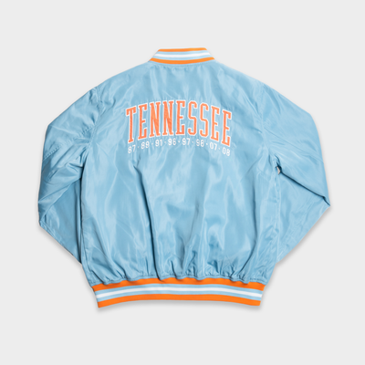 The Tennessee Lady Vols are, without a doubt, one of the most successful college basketball programs of all time. Under legendary head coach Pat Summitt, UT went to 18 Final Fours and won eight national championships, including three in a row in the late 1990s. This vintage-inspired Lady Vols bomber jacket commemorates each title in the Summitt era.