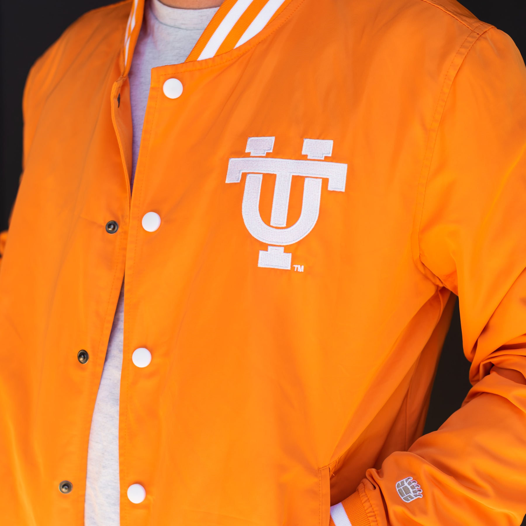 For this retro-inspired bomber jacket, we brought the fan-favorite throwback “Vols” logo used from 1983 to 1987. To match the era, we used the interlocking “UT” monogram used at the same time, from 1983 to 2000. Brought to you in partnership with College Vault.