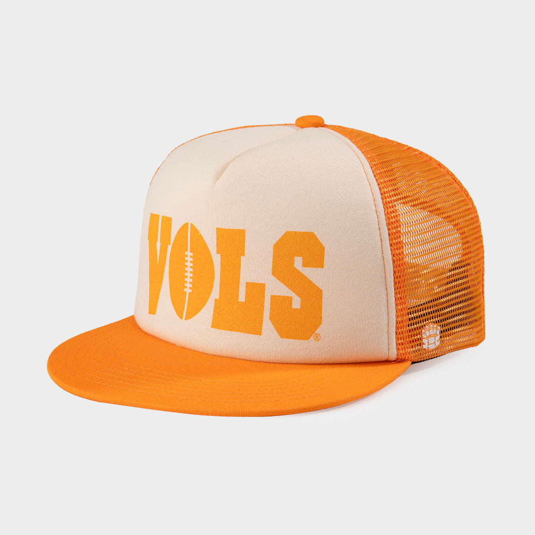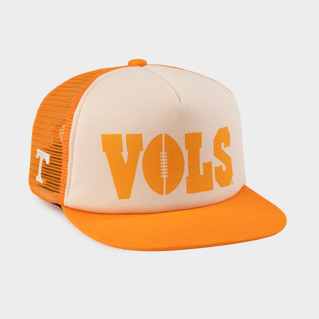While the structure of our vintage trucker hat reads more '90s and 2000s, we incorporated the best of the Vols from the 1970s in this hat design. This Vols football wordmark can be found on ticket stubs from the '70s, with a retro block "T" on the side of the hat to match the era.