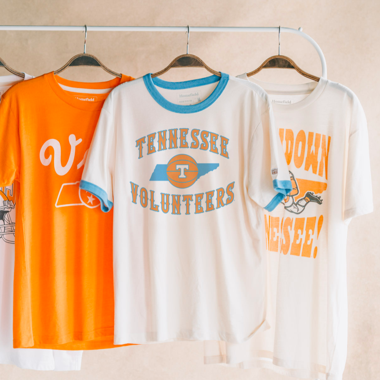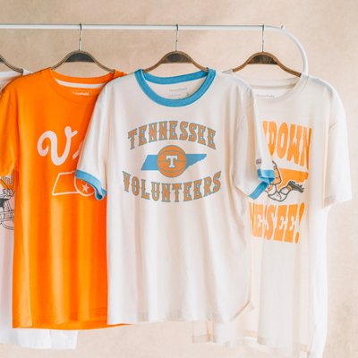 We threw it back to the 1970s with this retro-inspired Vols look, specifically to Tennessee men’s basketball and their legendary duo of that era, Ernie Grunfeld and Bernard King. Known as the “Ernie and Bernie Show,” Grunfeld and King led the Vols to a 61-20 record over three years and helped UT win the 1977 SEC title before both being drafted in the first round later that year. The two Vols legends then achieved new heights at the professional level, and briefly played together again on the Knicks. Brought to you in partnership with College Vault. Products are mocked up on a size S. Graphics may appear smaller on larger sizes. Products are mocked up on a size S. Graphics may appear smaller on larger sizes. TEN-RING-001-XS-VAULT