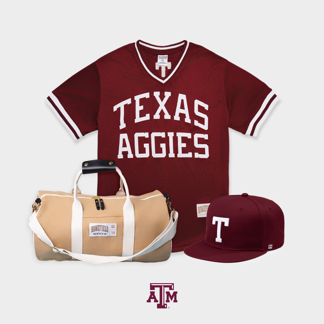 Shine at the diamond with the Texas A&M Ballpark Bundle. We designed the Aggies' Diamond Classics pullover to pair perfectly with its corresponding retro snapback. When you grab the matching set, we’ll include a Homefield canvas duffle bag as a durable, functional accessory.