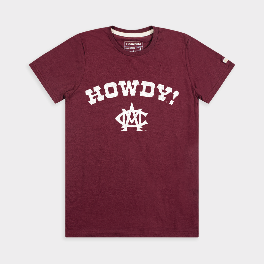 One of the most unique Aggie traditions is the official greeting of Texas A&M. Students in College Station commonly greet each other and visitors with a “Howdy!” that has given A&M the reputation of being the friendliest campus in the world. The fun tradition arose about the same time as the classic AMC mark you’ll see on this comfortable Aggie t-shirt.