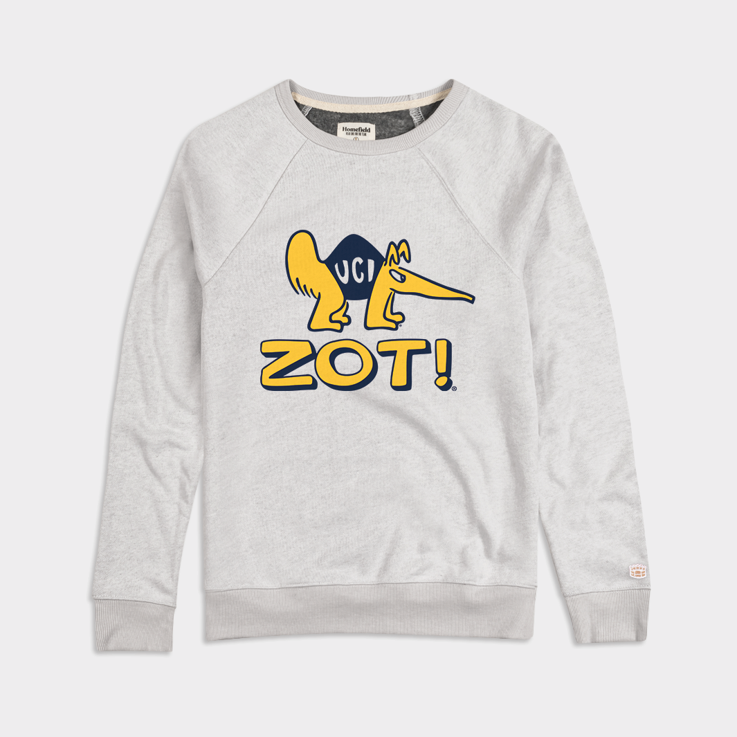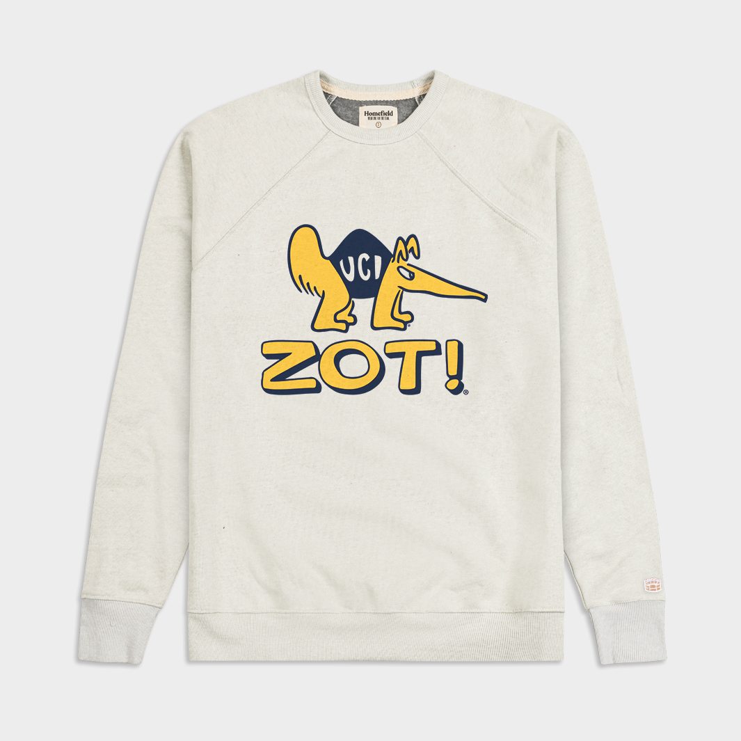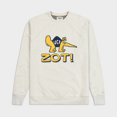 The anteater was suggested as a mascot in 1965, and shortly thereafter the tagline "Zot!" was adopted from Johnny Hart's B.C. comic strip. The unique battle cry lives on today, and is proudly featured here on this soft crewneck sweatshirt.