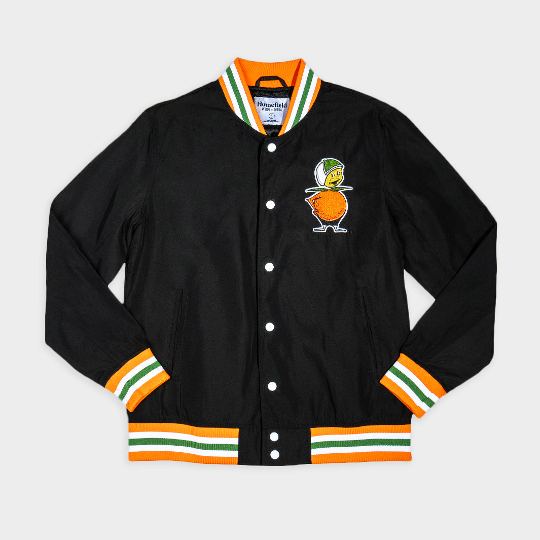 In UCF’s early days, university president Charles Millican and his brother-in-law, Norman Van Meter, created a mascot for the university that combined Florida’s citrus industry with the school's mission to train NASA and Cape Canaveral engineers. The result? A creature with the head of an alien and the body of an orange, named the “Citronaut.” Because the Citronaut was unpopular at the tie and retired almost immediately, this bomber jacket is our interpretation of what retro Citronauts memorabilia could have been, if he wasn't so ahead of his time.