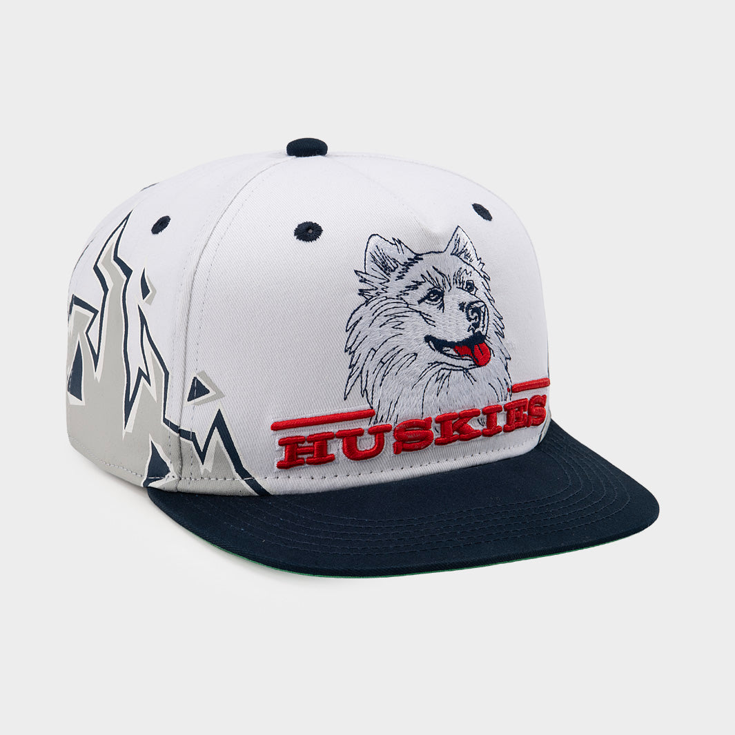 For this bold, loud Huskies snapback, we weren't inspired by any specific piece of memorabilia. Instead, we drew inspiration from the brightly patterned jackets and caps worn on sidelines throughout the 1980s and 1990s.