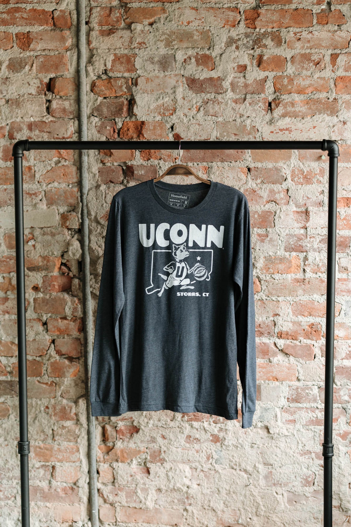 Products are mocked up on a size S. Graphics may appear smaller on larger sizes. UCONN-LONG-003-XS-CLCVTG| Chest Width | Body Length | Sleeve Length | |