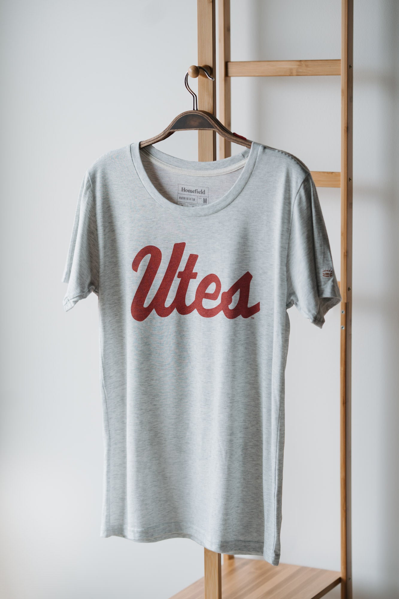 This vintage baseball script is a crisp, classic look for any Utah fan. It’s not just for baseball fans, of course – you can show love to all 20 varsity sports with this design. If it were us, we’d wear this at Utah women’s gymnastics meets, where the Red Rocks consistently have some of the highest attendance numbers for the sport.
