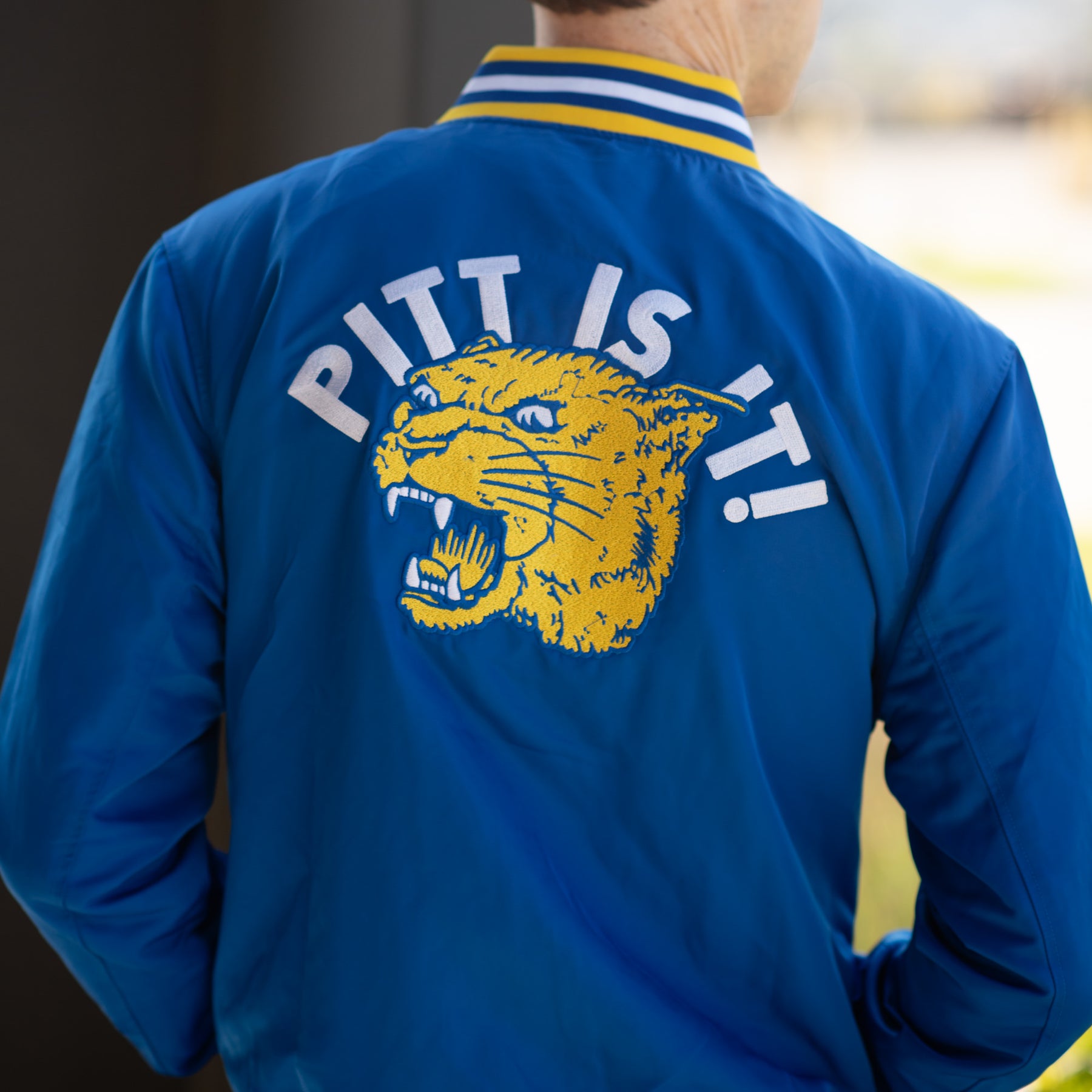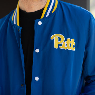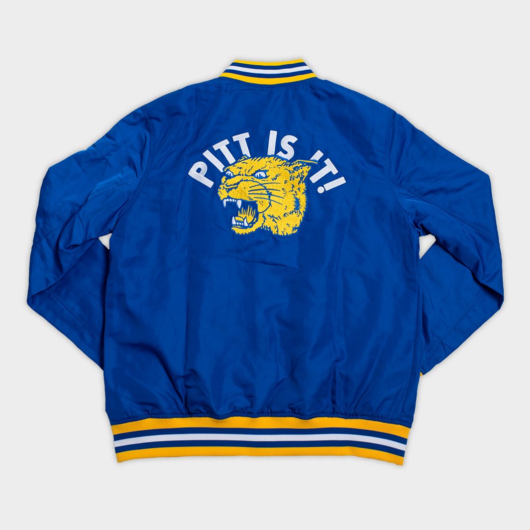 This bomber jacket celebrates the golden age of Pitt football, starting with the famous script “Pitt” logo that debuted in 1973 on the front. On the back, you’ll find Sports Illustrated’s famous headline, “Pitt is It!” that celebrated the Panthers’ 1976 National Championship. To tie the ‘70s vibe together, you’ll find the roaring panther logo that debuted the same year Pitt won it all.