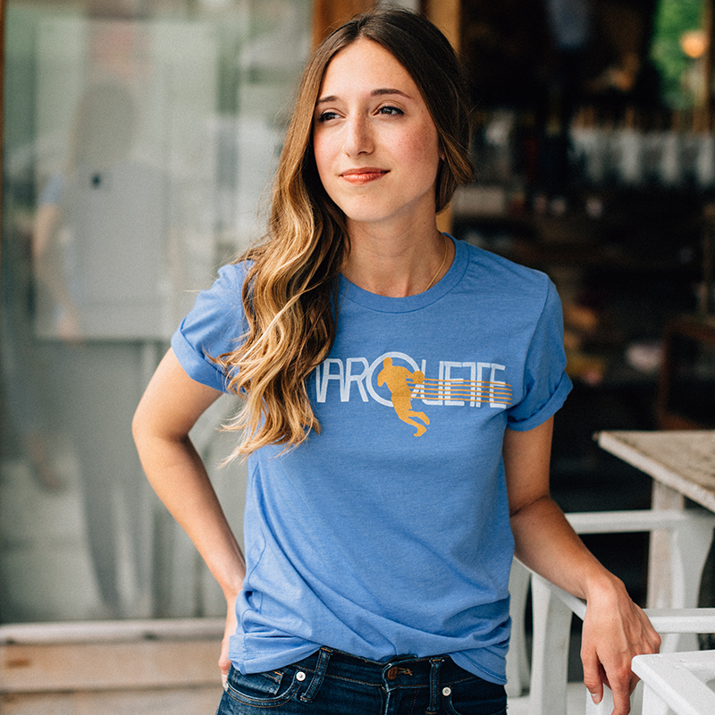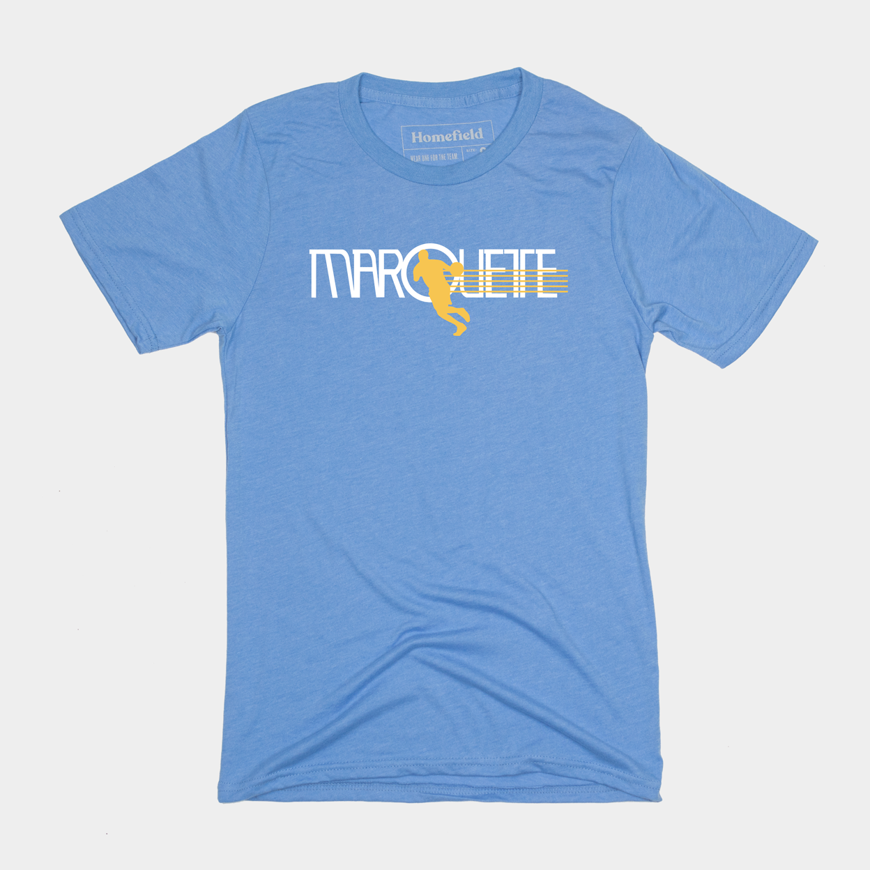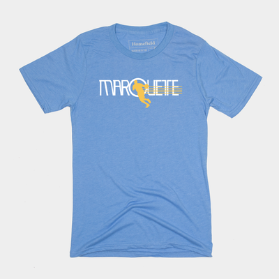 Marquette's basketball legacy is long, and runs through today. We wanted to highlight that legacy with this tee, bringing this design from Marquette basketball programs, where it was prominently featured on the cover of every program in the early 1980s.