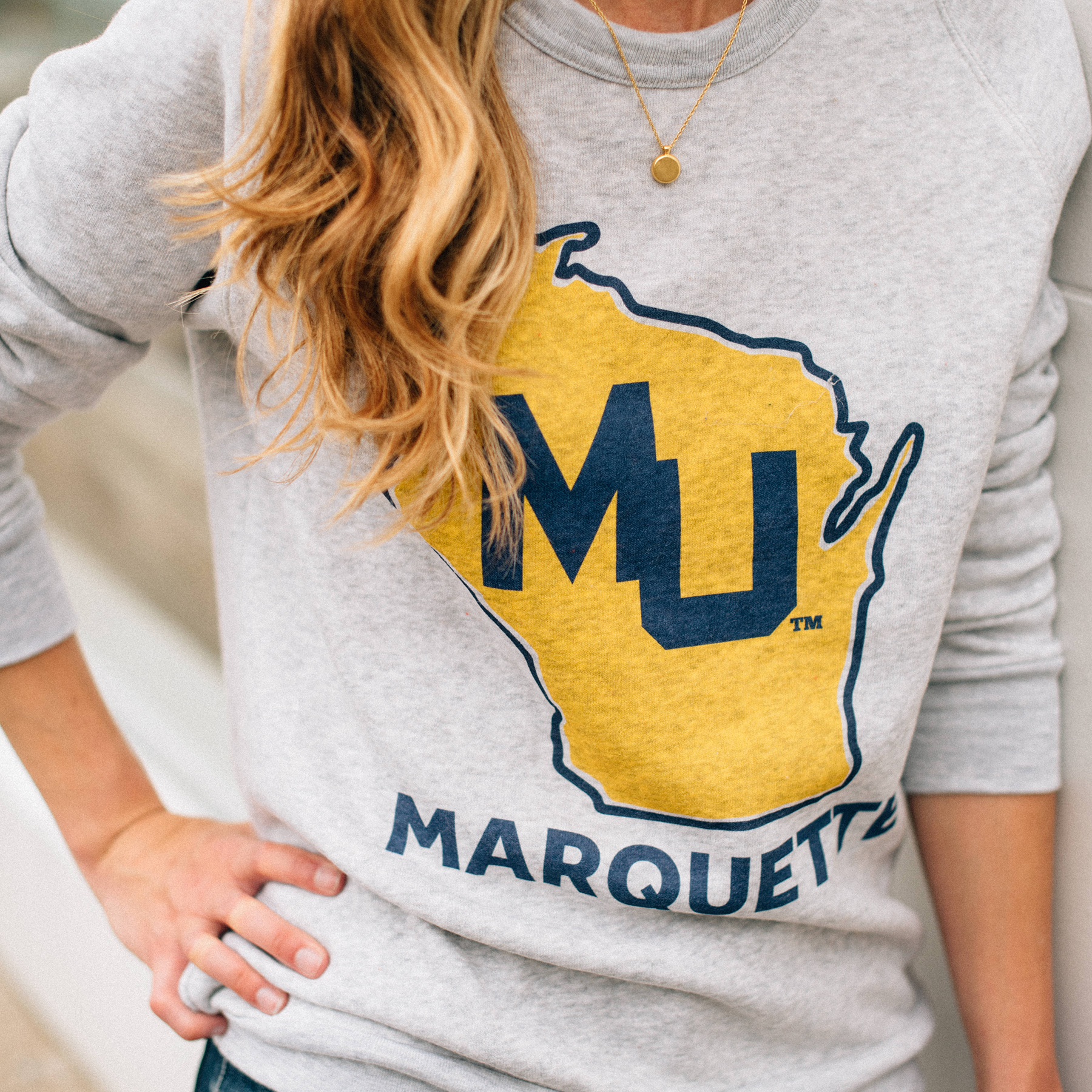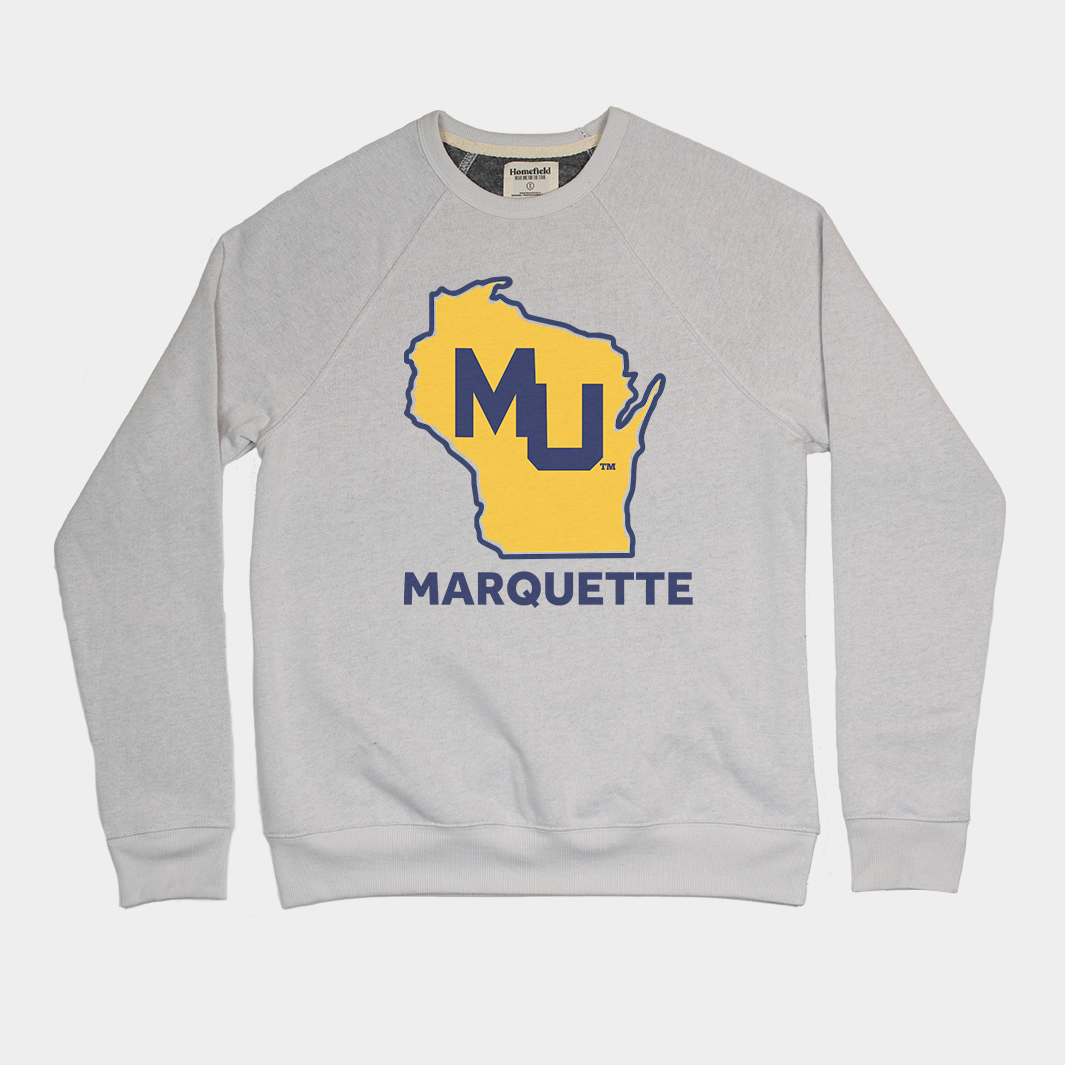 Marquette has brought the state of Wisconsin their only basketball national championship in 1977. This design is a nod to that title, with the vintage MU logo from the 70s across the state. Printed on an incredibly comfortable fleece triblend sweatshirt.