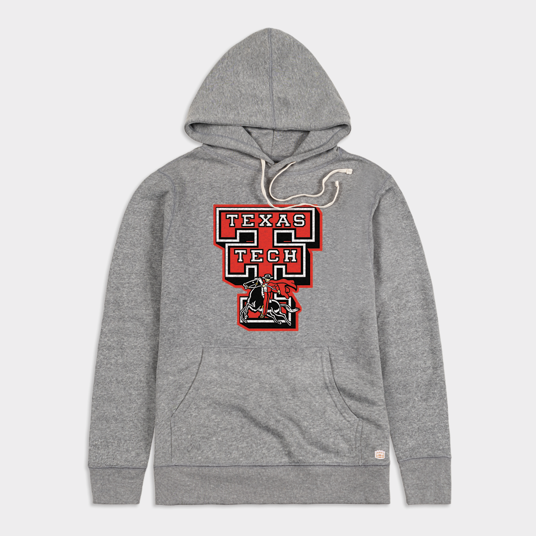 Cozy up in this super soft hoodie featuring a vintage Double "T" and the iconic Masked Rider mark. Brought to you in partnership with College Vault.