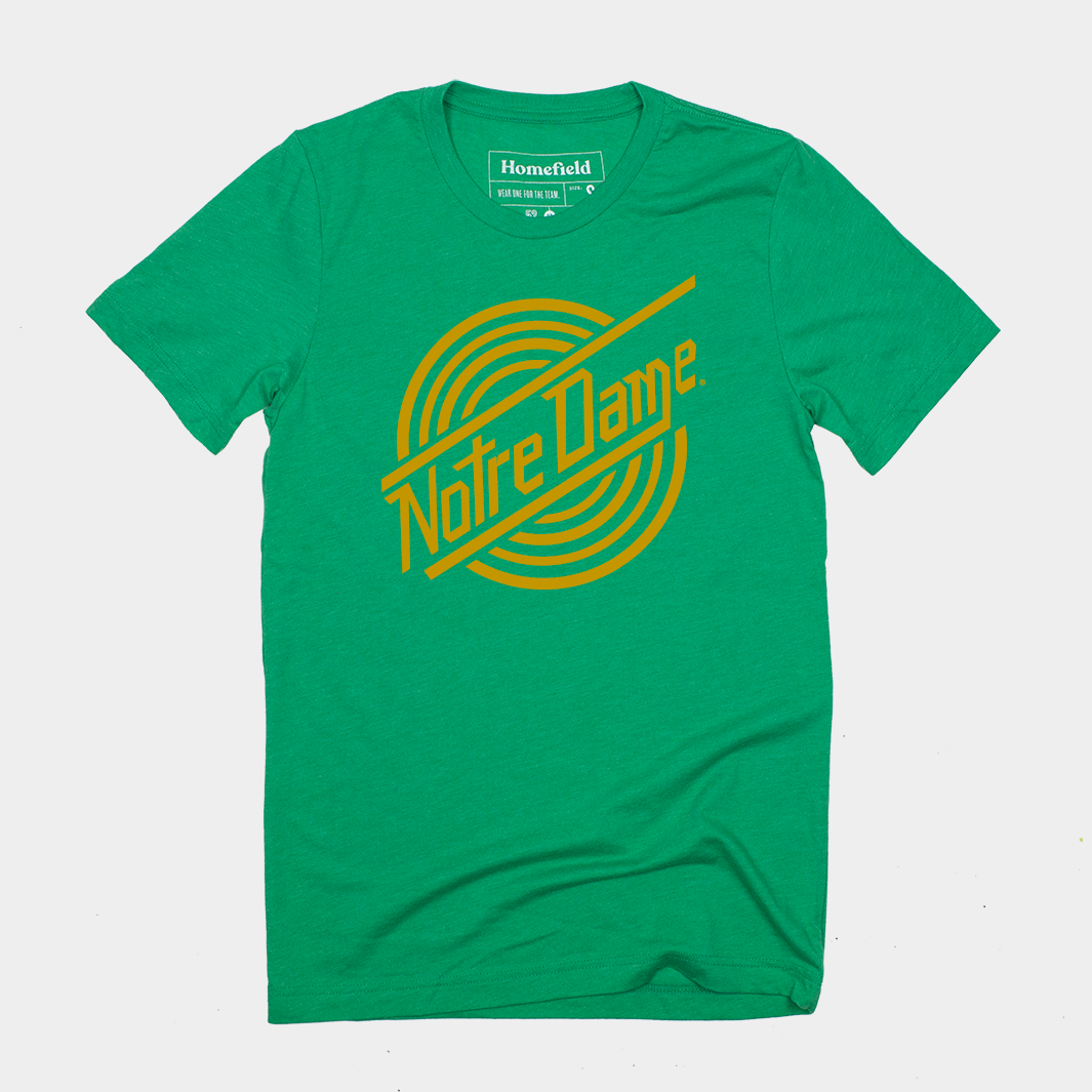 The University of Notre Dame is steeped in tradition, but over the years there have been some designs that are very representative of the era they came from. This unique design from the 1970s was discovered in our extensive research, and we had to bring it back for today’s fans to enjoy.