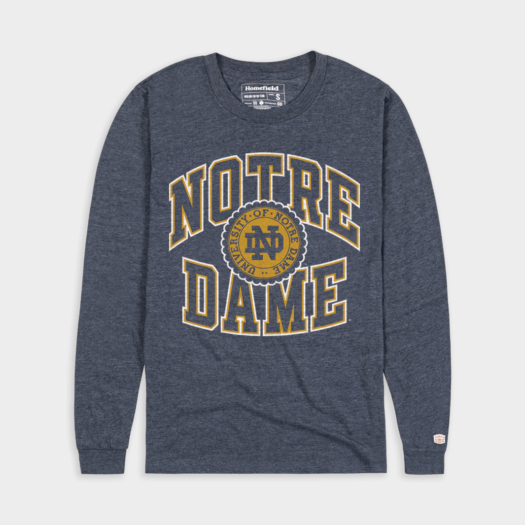 This design is based on timeless gear you'll still find in South Bend today. This particular bold, arched type evokes the the ‘90s, when the Irish dominated women’s soccer and men’s lacrosse, with a combined 17 conference titles between the two teams.