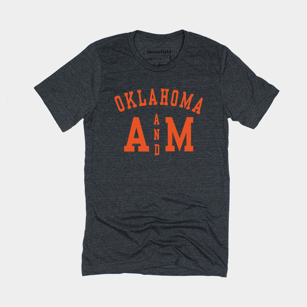 This design comes from the 1930s, back when Oklahoma State was still known as Oklahoma A&M and the baseball team wore this block lettering across their chests. Celebrate OSU history in this comfy charcoal tee, perfect for rooting on the Cowboys in the new O’Brate Stadium in Stillwater.
