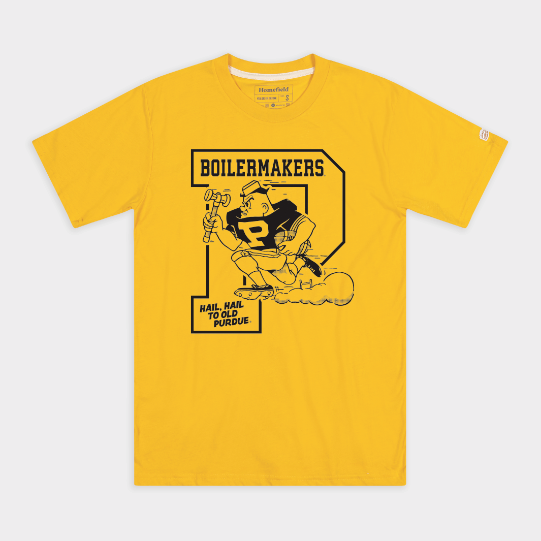 We found this illustration of Purdue Pete on the football team’s tickets in 1977. While 1977 wasn’t quite the Boilermakers’ year, as Jim Young was getting his footing in his first year coaching the program, the team did a full 180 in 1978, going 9-2-1 and defeating Georgia Tech in the Peach Bowl.