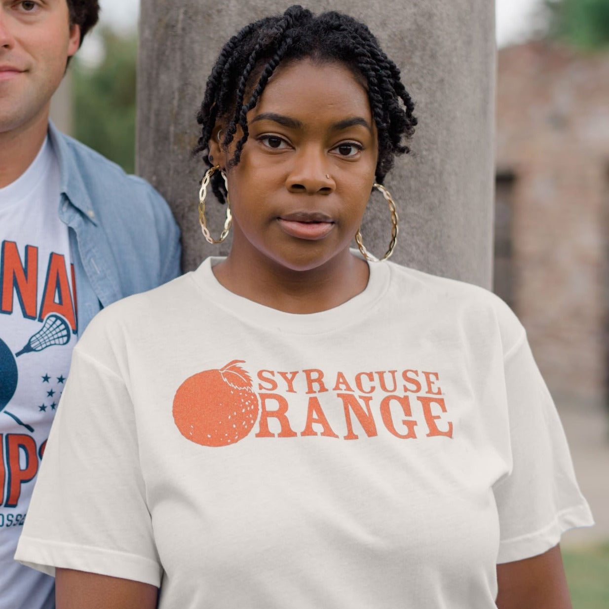 We found a version of this vintage logo on old Syracuse memorabilia that roughly dates back to the early days of Otto the Orange. Prior to Otto’s debut, the university used a Native American caricature mascot that Syracuse students successfully petitioned the school to discontinue in 1977. The so-called “Saltine Warrior” was replaced by a wildly unpopular gladiator for a year before Syracuse created – and then embraced – what they called “an Orange with appeal.”