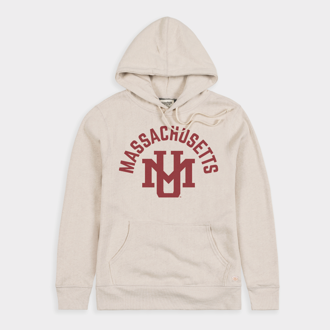 This vintage "UM" is a timeless look that's sure to be a hit in Amherst and beyond. The signature maroon and white are as iconic as their "Minutemen" nickname, which the university officially selected in 1972. Moving away from using Native American imagery for its nickname, UMass became the Minutemen to honor the Commonwealth's vital role in the American Revolution. Products are mocked up on a size S. Graphics may appear smaller on larger sizes. UMASS-HOOD-003-XS
