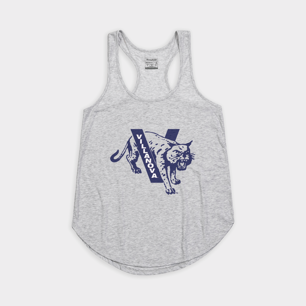 In use from 1965-1995, this iconic Villanova logo is still beloved by fans. The university adopted the nickname “Wildcats” after a student body vote in 1926. While “wildcat” is a fairly broad term, Villanova’s mascot most closely resembles a bobcat. We’ve printed this legendary Wildcat mark on our lightweight, flowy tank!