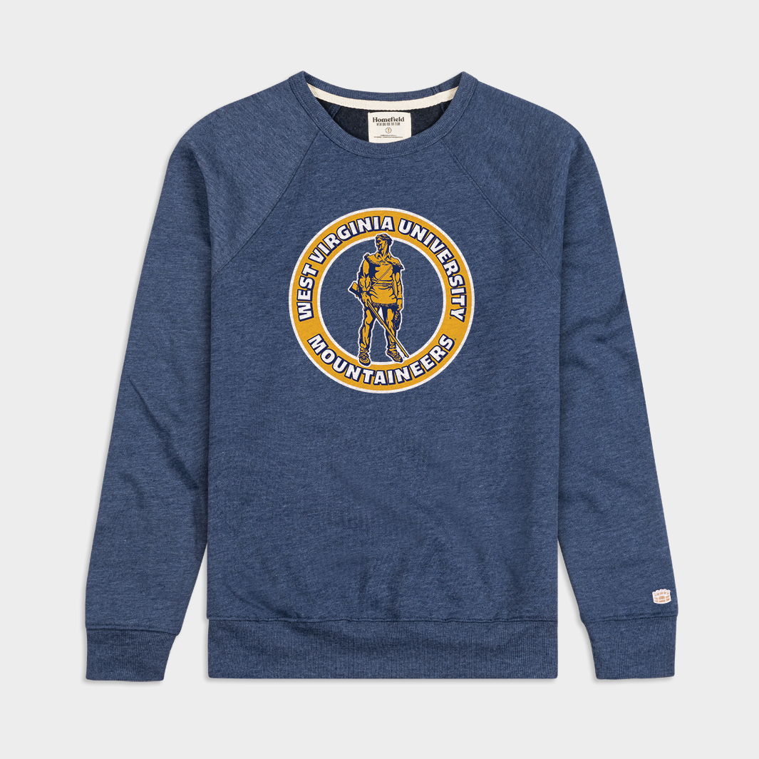 Pick up this comfortable crewneck and you’ll be set for football weather at Mountaineer Field in Morgantown. Inspired by a football booster button from the 1970s, it features an illustration of sculptor Donald De Lue's 1971 bronze statue “The Mountaineer” that stands proudly on the front lawn of the Mountainlair student union building.