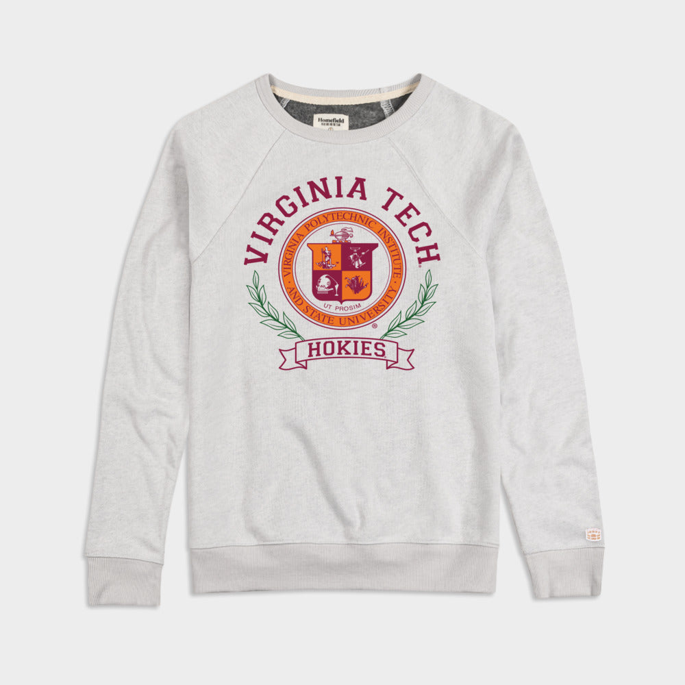 There's nothing more timeless than a college seal sweatshirt, and that's exactly what we created for Virginia Tech fans and alumni. Brought to you in partnership with College Vault. Products are mocked up on a size S. Graphics may appear smaller on larger sizes. VIRGTECH-CREW-003-XS-VAULT-LGREY