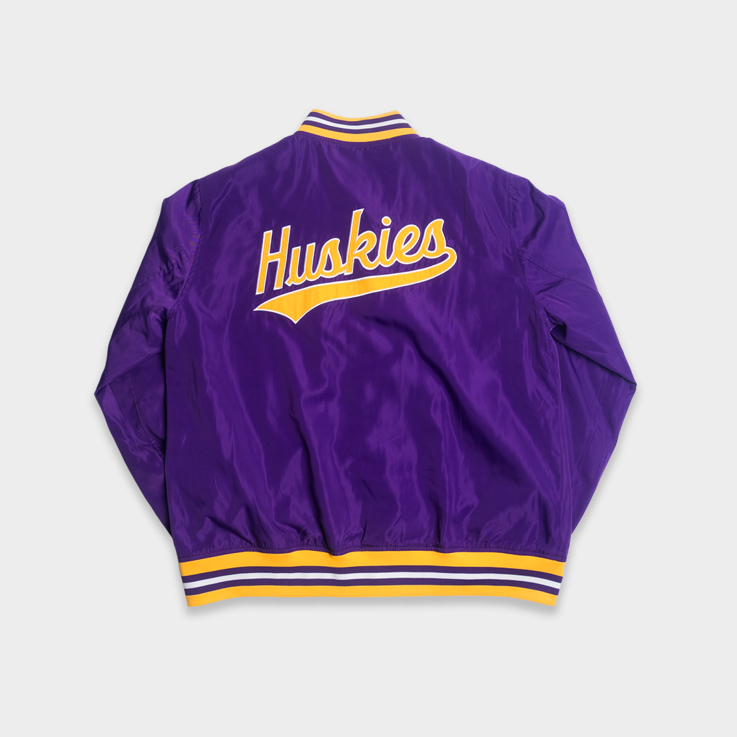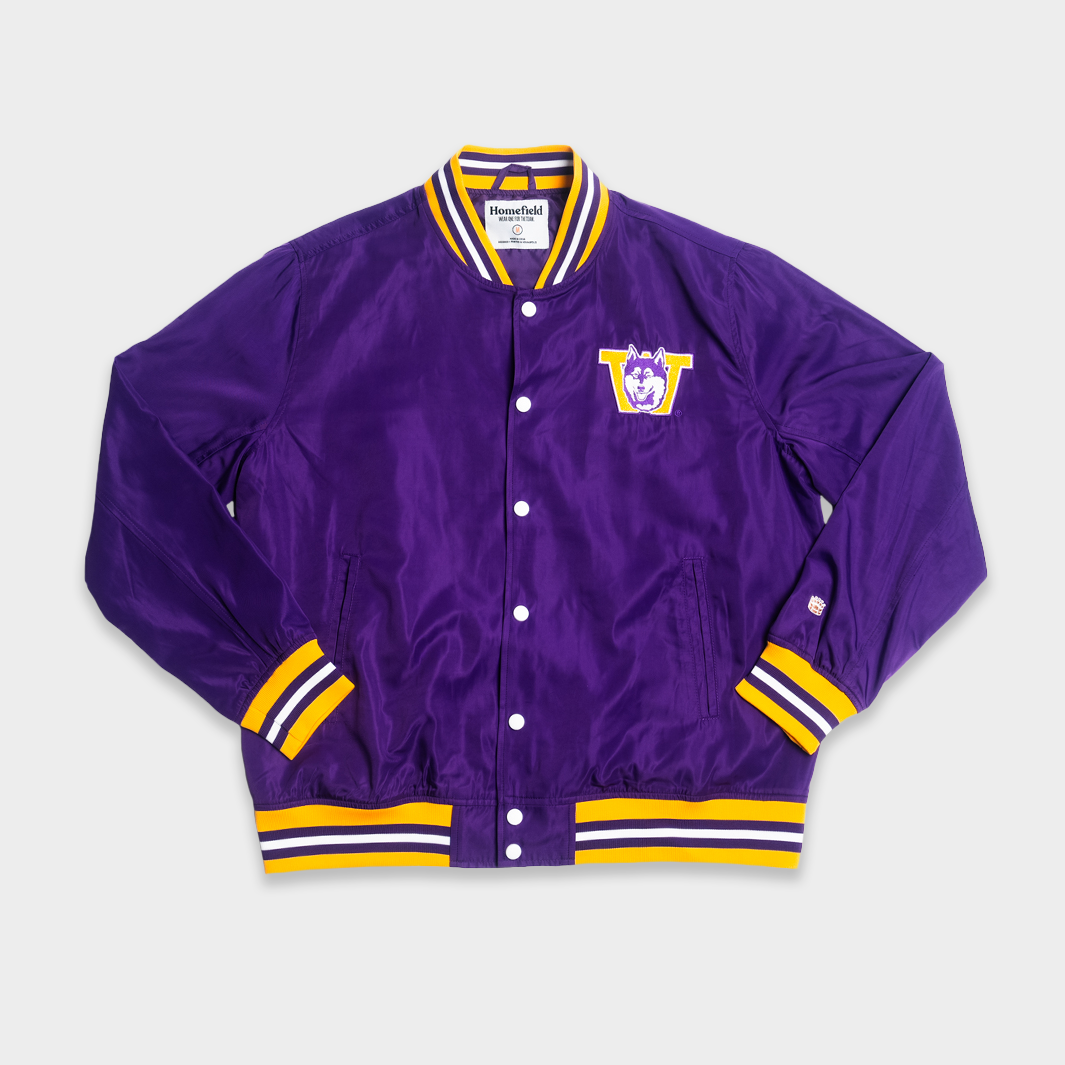 We combined two great Washington vintage references for this bomber jacket. On the front, you'll immediately recognize this husky logo used from 1979-1995. On the back, you'll find a vintage baseball script Washington wore through the 1980s. For a true retro feel, the jacket is set in the bolder purple and gold that the Huskies wore back in the day. Brought to you in partnership with College Vault.