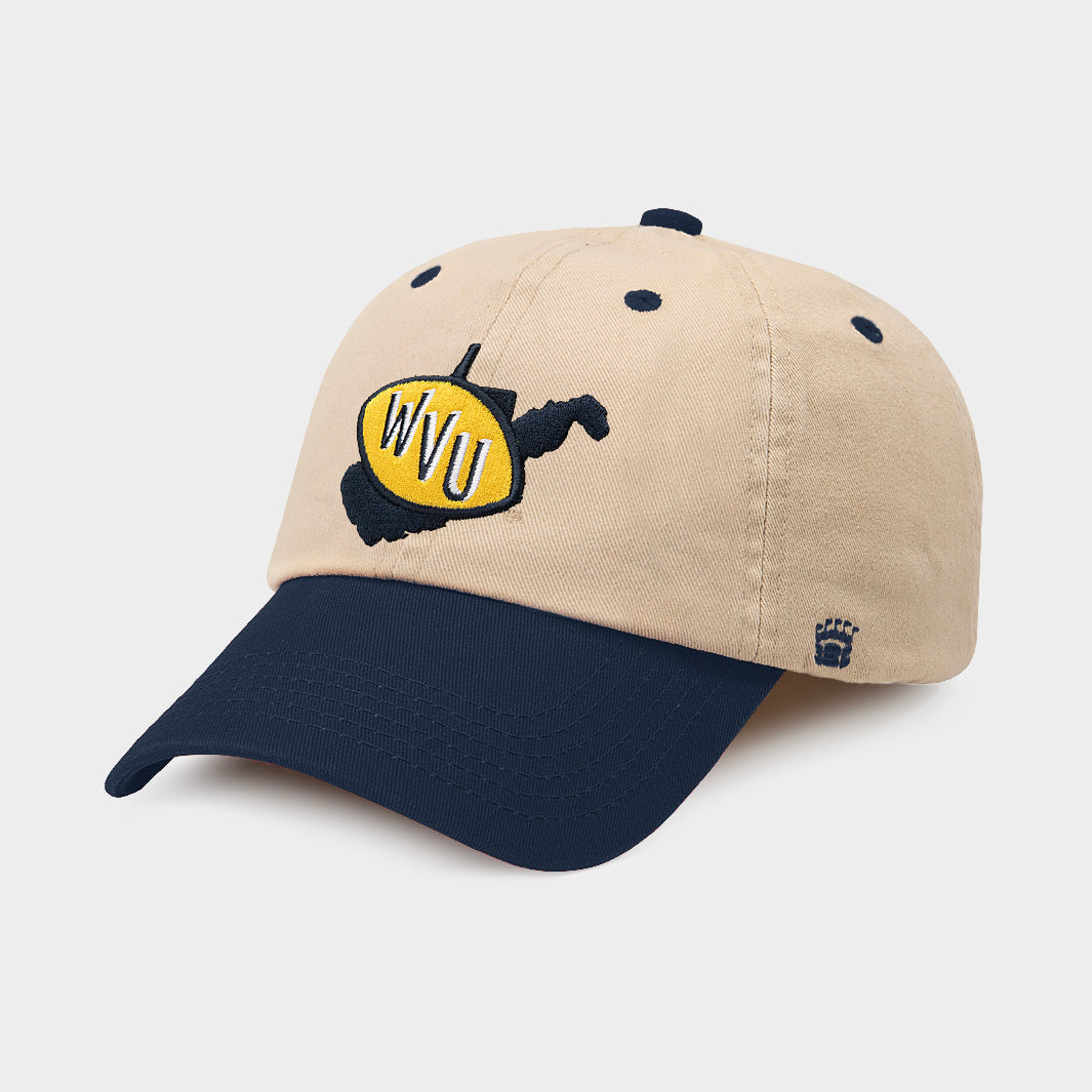 The WVU logo we've featured on this dad hat, paired with an outline of (almost Heaven) West Virginia, was used from 1970 to 1980, most famously on their football helmets. Coincidentally, the logo was in use when “Take Me Home, Country Roads” debuted in 1971. The song was added to the Mountaineer Marching Band routine in 1972, and serves as the official university theme song. Brought to you in partnership with College Vault.