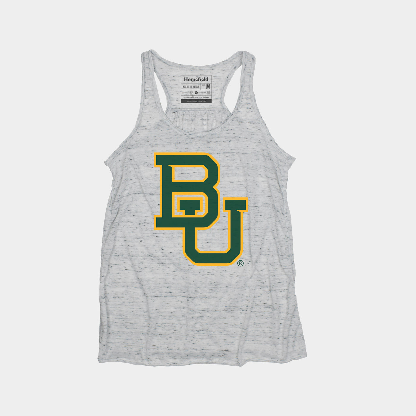 Baylor's iconic "BU" on a lightweight women's flowy racerback tank.