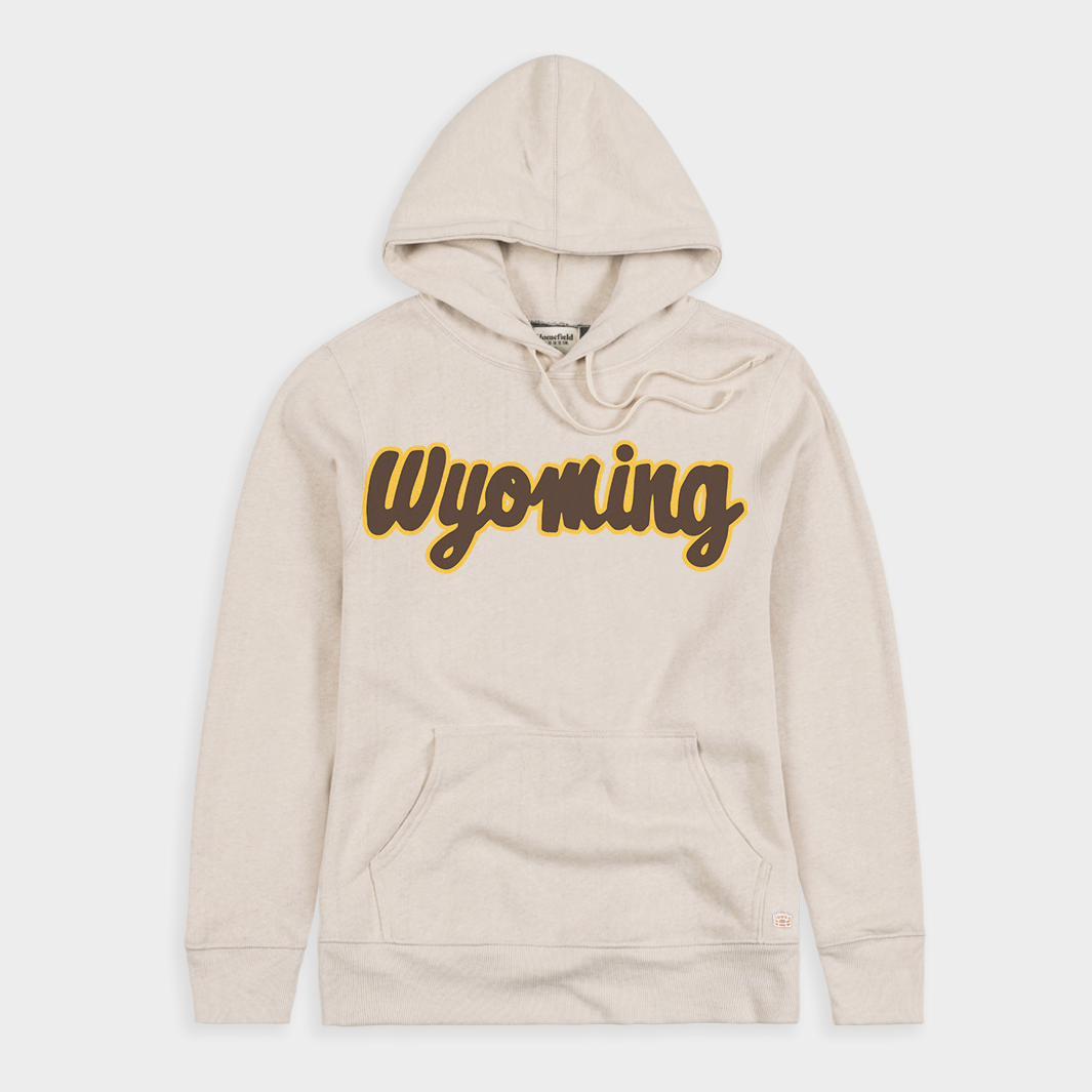This retro Wyoming script hails back to 1996 when the Cowboys' football team went 10-2 to win the WAC Pacific Division. Today, you can get it on our super soft oatmeal hoodie- perfect for your next trip to War Memorial Stadium.